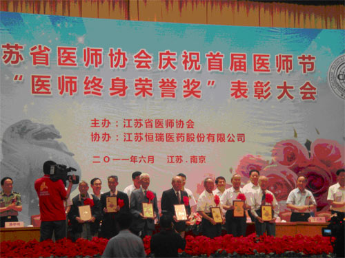 江苏省医师协会庆祝首届“医师节”暨“医师终身荣誉奖”表彰大会于2011年6月25日在省政协礼堂隆重举行。